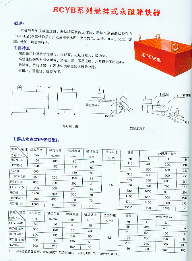 RCYB悬挂式永磁除铁器