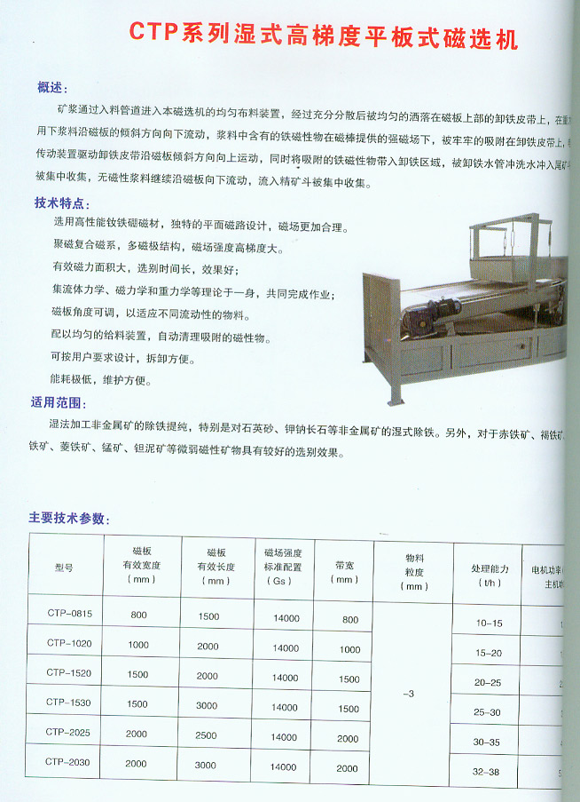 CTP系列湿式高梯度平板式磁选机